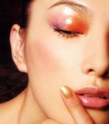 60秒脸颊 “脸颊部分不用太复杂的修饰,可以用一点古铜色膏状腮红涂在颧骨下,突出面部轮廓,或者用之前的散粉刷将腮红扫在颧骨上。你还可以将较深颜色的腮红从太阳穴涂抹到颧骨以下,而较浅的颜色涂抹在颧骨上,效果将更有立体雕塑感。