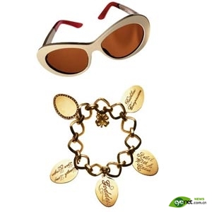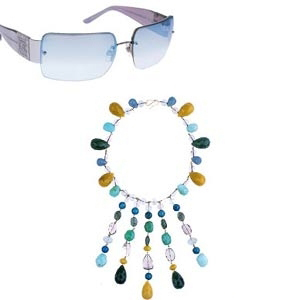 淡蓝色的方形太阳镜配上彩色水晶项链,清爽中带一丝活泼,跳动的彩色珠串让你爱不释手!彩色珠串一直延伸到胸前,如果搭配一件淡色吊带裙,说不尽的风情……