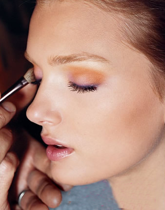 从紫色的眼影慢慢的晕开到黄色的眼影稍作层次的分明,效果很好。