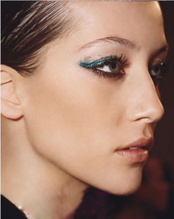 采用“星空珠光粒”及“晶灿亮彩片”做微妙搭配,表现出一种神秘感。另外,介于金属质感与柔和色彩之间的眼妆,还能表现出极富创造力与前卫的时尚感。