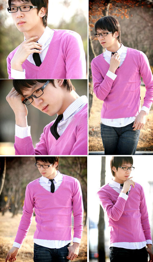 眼镜与色彩针织衫的魅力型男搭配