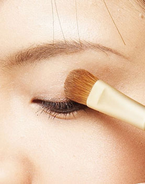 用刷子将眼皮中间深浅的两色晕开成自然的渐层色。