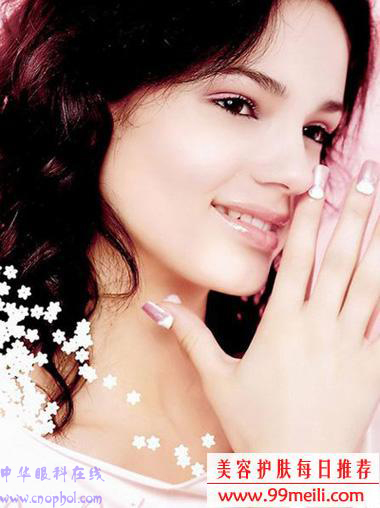 1 使用粉色眼影描绘上眼睑前1/2再用灰色珠光眼影打亮眼窝后1/2部位下眼头的部位使用银色眼线液打亮