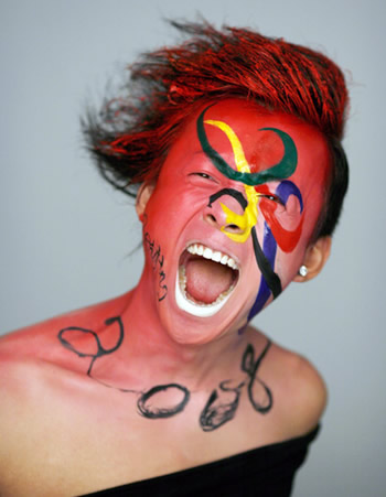 哇,好想大叫一声,太有创意头脑了,给人感觉很有激情,不错,整个妆容都充满了兴奋状态。