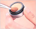 将眼影蘸满半个粉刷,可先在手背上试色抖落掉一些粉,避免将太重的色彩直接涂抹于眼皮。