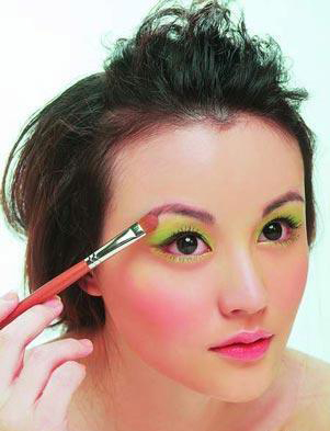 初级版:浅色的单色眼影是最基础的必备单品,带闪光的浅蓝、浅绿、浅紫色都很出彩,显得很有活力。只要选用配合衣着的色调,用刷子甚至手指涂满整个眼睑即可,就像彩妆品专柜小姐都化这样的眼妆。