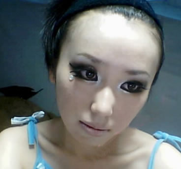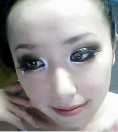 用粉底液把嘴唇的颜色遮掉了,本来想涂个唇彩,然后发现这样也蛮好看的嘛。这样更凸出了眼妆了而且苍白的嘴唇更显另一种脱俗的气质。所以接着只在上面涂了透明的唇油然嘴唇水润就行了。