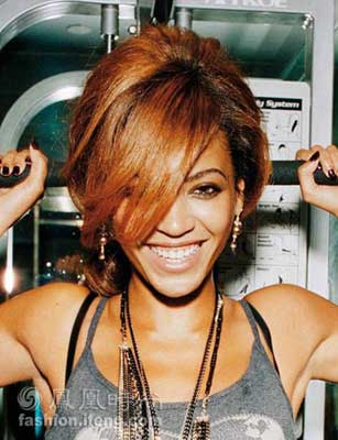 发型:前面头发往下梳。