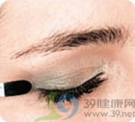 以大眼影刷沾浅绿色眼影,刷满整个眼窝。