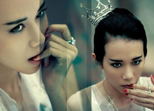 莫文蔚这款酷味眼妆的重点,除了深而浓的眼线描画,上挑的眉形也很关键。 想让自己的眼妆变得更加丰富,选择彩色眼线会让你很出挑。蓝和绿的搭配很完美。
