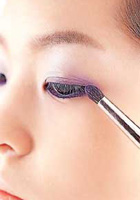 3.用深紫色眼影在双眼皮和眼角处涂抹