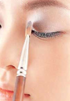 2.用珍珠白色眼影在眼角着重涂抹