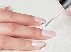step1 在每个甲面上依次均匀地涂抹上一层1(淡粉色指甲油)。