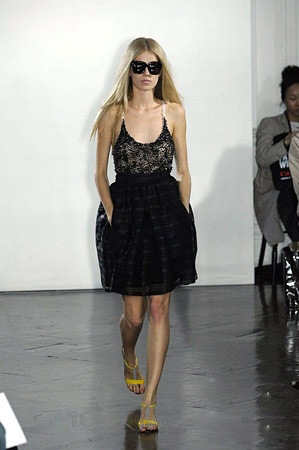 Erdem 08伦敦秋装秀场弥漫着浓厚的秋意,大量使用的印花面料让飘逸的裙装更增添了生机盎然的感觉。明艳的色彩结合带有反光效果的面料更增添了活力四射的青春魅力。秋季常见的小西装、风衣、连衣裙等款式在本次秀上都有体现,蕾丝边、透明轻纱还有皱褶设计都将柔美的女人味衬托到极限。
