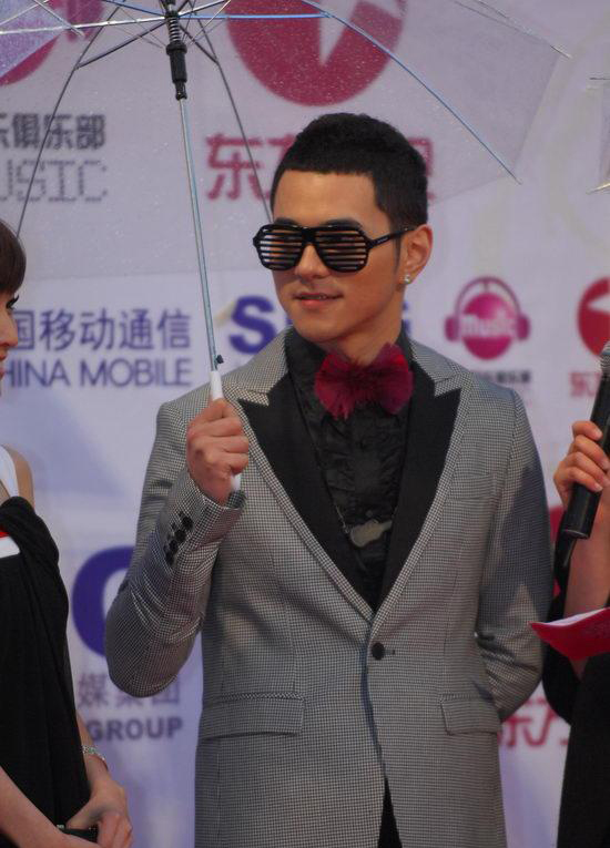 新浪音乐讯 第二届无线音乐颁奖盛典于13日晚在上海大舞台隆重举行,新浪音乐视频图文直播此次盛典,图为李晨扮相抢人眼 条纹眼镜搭配闪亮耳钉。