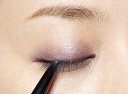 1.涂上眼影后,把眼线笔在睫毛根部仔细画一条细细的眼线,使眼色填满睫毛之间的空隙。然后再用棉棒把眼线稍稍晕染开