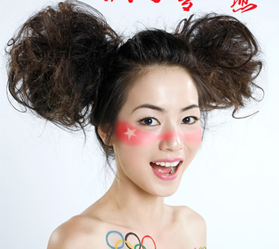自己设计的奥运妆很新颖,裸妆的肌肤完美的妆容搭配的十分亮眼