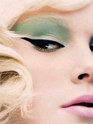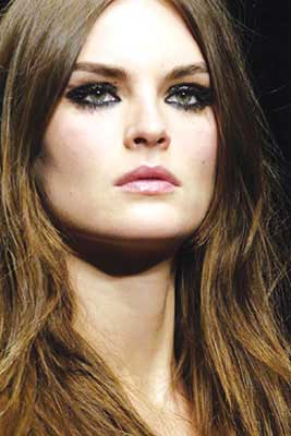 6 吊眼时的化妆,也就是上扬眼,这种形状的眼睛画上眼线的时候不能上扬,应该尽量拉平,下眼线的内眼角处在睫毛内则画眼线,外眼角画粗一些。