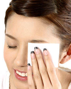 用化妆棉蘸眼部专用卸妆液,在眼部轻按5秒,让它有充分的时间溶解睫毛、眼线上的防水成分。