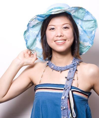 奥运创意彩妆:蓝色主题,蓝色眼影,蓝色裙子,蓝色帽子。用这身妆扮去为跳水队加油,一定成为拉拉队明星!