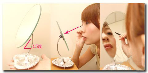 将镜子立于视角水平线的下方,然后镜子角度稍微上仰约15度。
