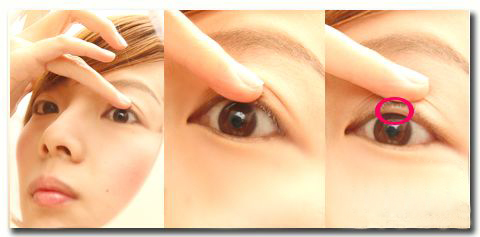 隐形眼线要画的部位就是眼皮翻开的上眼睑部位+睫毛根部的缝隙处,画隐形眼线可以让眼睛立刻变有神,加深眼睛轮廓,不想让妆感太重的人只要画隐形眼线即可。另外,首次学画眼线的人,不要把画眼线当成是要用笔描出一条线,而是要想像成在这个线形区域填满颜色,所以采取的方式不会是从眼头到眼尾画出一条线,而是将这条线分成很多区块,然后分区去画上颜色,这里所教的步骤是将上眼睑分成3个区段,前面、中间、尾部去画上眼线,初学者可先从分段式的眼线画法开始学!(PS:以下这张照片只是一张象征性的图片,当然除了隐形眼线还有其他眼妆辅助。)