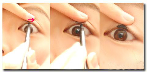 PS:用无名指翻起眼皮的塬因是动作较轻柔,且在画眼线的时候不会遮住镜子中的视线,若是用中指翻起,看镜子裡的上眼睑可能会被无名指遮住。