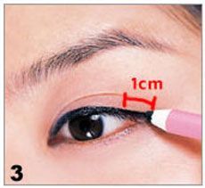Step 3:再用“黑色眼线笔”描一次眼线,在眼尾稍微拉长1mm。