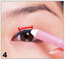 Step 4:在黑眼球正上方,再补一条和眼珠同宽的、略粗一点的眼线,使眼珠看起来更圆大。