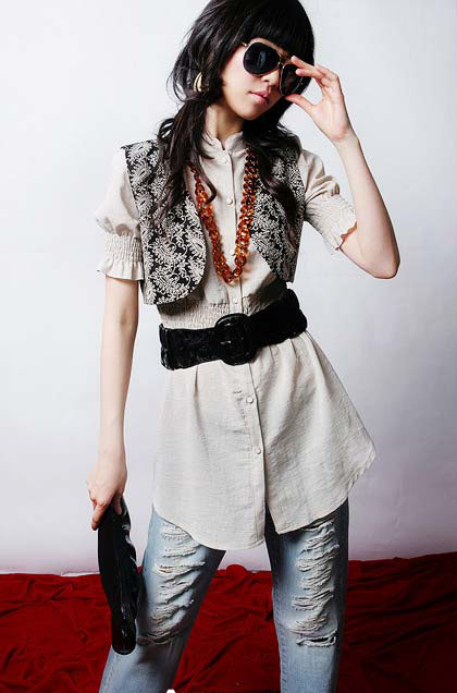 黑色腰带强调个性感,塑造不俗的焦糖布丁味道
