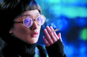周迅戴上超高度数的眼镜后,差点连烟都看不见。