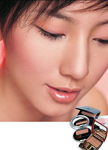 如果在双唇撅时面颊出现的凹处竖向刷腮红,会有明显的瘦脸效果;而在微笑时颧骨突出的部位刷上腮红,则可令面颊丰满起来,适合脸型瘦的人。