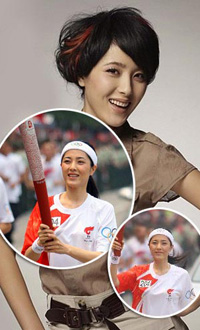 6月2日,北京奥运圣火在湖北荆州传递。图为女星曾黎传递圣火瞬间。