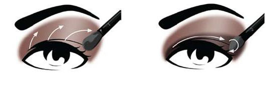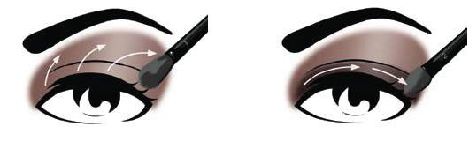 第二步:用刷头2将阴影色在眼睑上从眼角均匀扫至眼尾,比内双眼皮略宽,并在眼角处稍向上晕开,制造阴影效果。