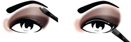第三步:用刷头3将高光色涂在眉骨下方,内眼角处涂出“