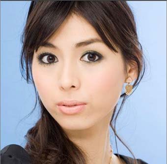 2、画完眼线后,在下眼皮外眼角处,用墨绿色眼影重叠眼线轻轻往外扫,使眼线边缘稍稍模糊,让眼睛看上去更大更自然。 最后,保持一贯的微笑表情,用粉色腮红横扫在两颊处,让整个妆容变得高贵。