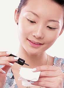 对于初试眼线液的人可先在手背上画几笔,熟悉眼线液的画法。