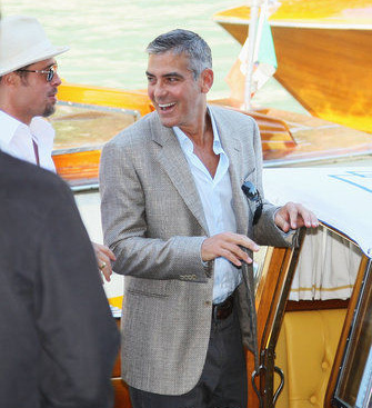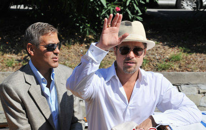 网易娱乐8月27日威尼斯前线报道 第65届威尼斯电影节将于当地时间27日晚在威尼斯丽都岛拉开帷幕,作为开幕片《阅后即焚》的主角,布拉德·皮特和乔治·克鲁尼出席了在威尼斯顶级酒店Hotel Cipriani举行的见面会。皮特一袭白衣戴墨镜亮相,显得神采奕奕,而之前传出要陪皮特走红地毯的朱莉至今不见踪影,让媒体更加期待今晚的开幕红毯秀。