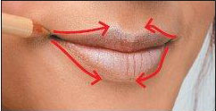 3、有的人唇边较深,可以做唇边的修饰。(由嘴角往下或往上中央延伸)勾唇边,呈现中间丰盈饱满。