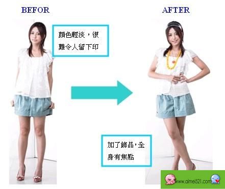 亮色全身:衣服虽然漂亮但看起来还会有些单薄,如果搭配上大又亮的项链,就不一样喽!为上半身增加了不少亮点,这就是为什么非要饰品的原因。