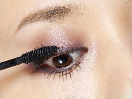 步骤4、最后就是重头戏--睫毛膏啦!用睫毛刷从睫毛根部开始向上刷,将每根睫毛都刷到,使睫毛浓密修长。如果一遍不够理想,那就多刷几遍!下睫毛也是哦!