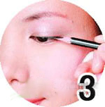 STEP3:将上眼皮轻轻向上拉提,用眼线笔从眼尾三分之一处开始描画眼线。