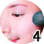 STEP4:用大毛刷沾取同色眼影粉提亮腮红,使整个面部的光感一致。