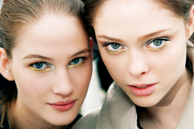 不若以往那样刻意在女性脸庞揣摩男性特质,本季的中性眼妆,是在一片柔美无瑕的粉雾状底妆及裸唇上所铺陈而出的;所以,尽管还是勾勒较粗并且还带有些棱角的眉型弧度,但却采用了较浅的浅褐色或是灰色,用自然的色彩展现性感的中性特质。眼线则是用黑色来强调上扬的眼形,让人融入时髦的20世纪五六十年代怀旧风采,更让人联想到赫本式的明亮大眼和碧姬的性感甜美。接下来的眼影反而是选用一些可爱的色泽来诠释:桃剪的米白的、亮金的或暖褐的,这种不那么高调的刚强轮廓,反而更展现了女性独特有型的性格,令人惊艳。