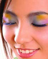 选择紫色眼影时,一定要参考自己的肤色,肤色较黄的人可以选择深紫色,肤色较白的人则适合淡紫色或加珠光的紫色眼影。另外,在同一眼部的妆容上,采用不同深浅的紫色可以制造出渐变的视觉效果。方法是先以亮紫色打底,再刷上深紫色即可。