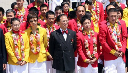 8月29日,北京奥运会内地金牌运动员代表团抵达香港,包括63位奥运冠军的代表团要在香港进行为期3天的交流访问,并与香港市民零距离接触。