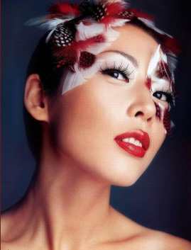 眼影,包括眼线、睫毛膏的丰富色彩是花果妆最瞩目的焦点部位。不要在超越原来经验的明亮鲜艳的色彩面前望而却步,合不合适,一定要试过才知道。