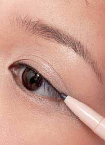 Step2 紧贴着睫毛根部,用眼线笔填涂上眼睑的睫毛空隙,要描画均匀。