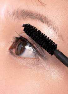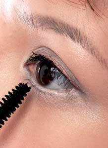 Step4 先刷睫毛梢,再从睫毛根向上刷。睫毛根处浓,睫毛梢一笔带过。