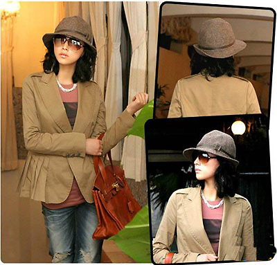 5、棕色的西装,里面配的是粉色的T—SHIRT,太阳镜配饰使得全身平庸的搭配不那么一般。